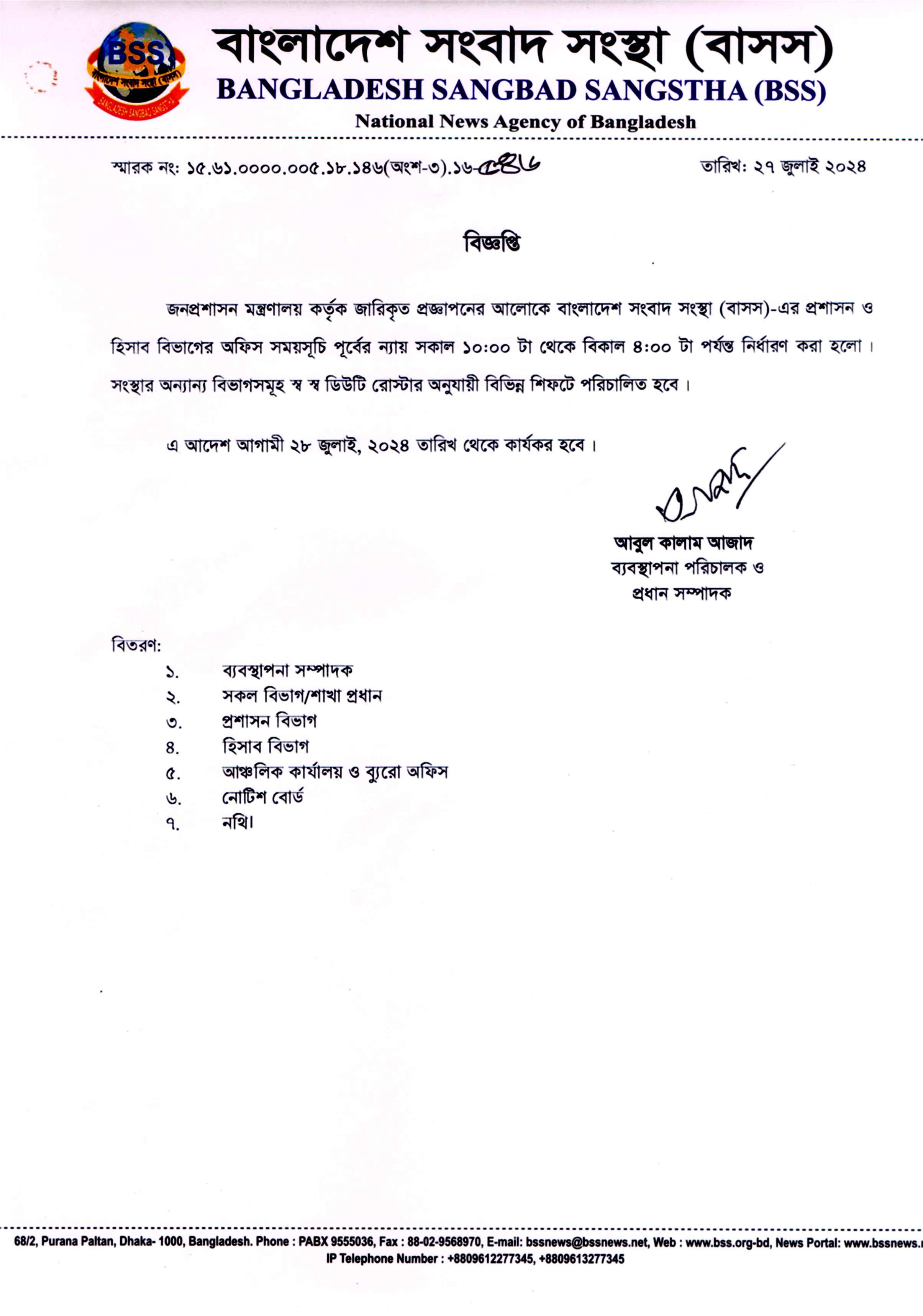 কন্টেন্ট: নোটিশ প্রকাশের তারিখ: ২৭-০৭-২০২৪ আর্কাইভ তারিখ: ০১-০১-২০৩১