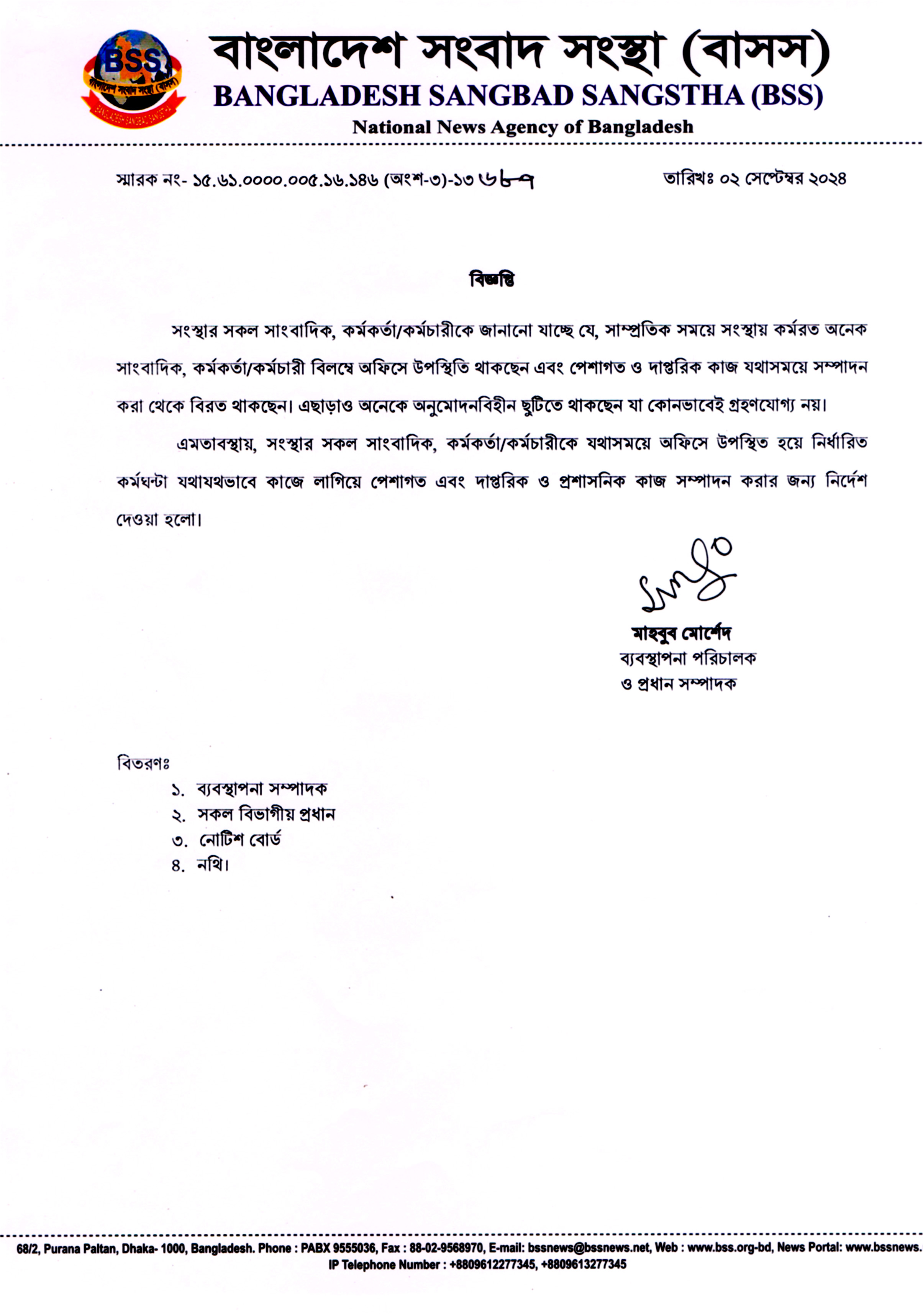 কন্টেন্ট: নোটিশ প্রকাশের তারিখ: ০২-০৯-২০২৪ আর্কাইভ তারিখ: ০১-০১-২০৩১
