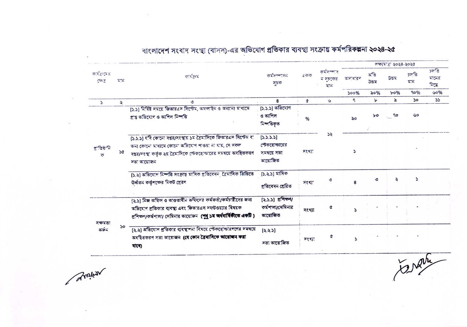 অভিযোগ প্রতিকার ব্যবস্থা সংক্রান্ত কর্মপরিকল্পনা, ২০২৪-২৫