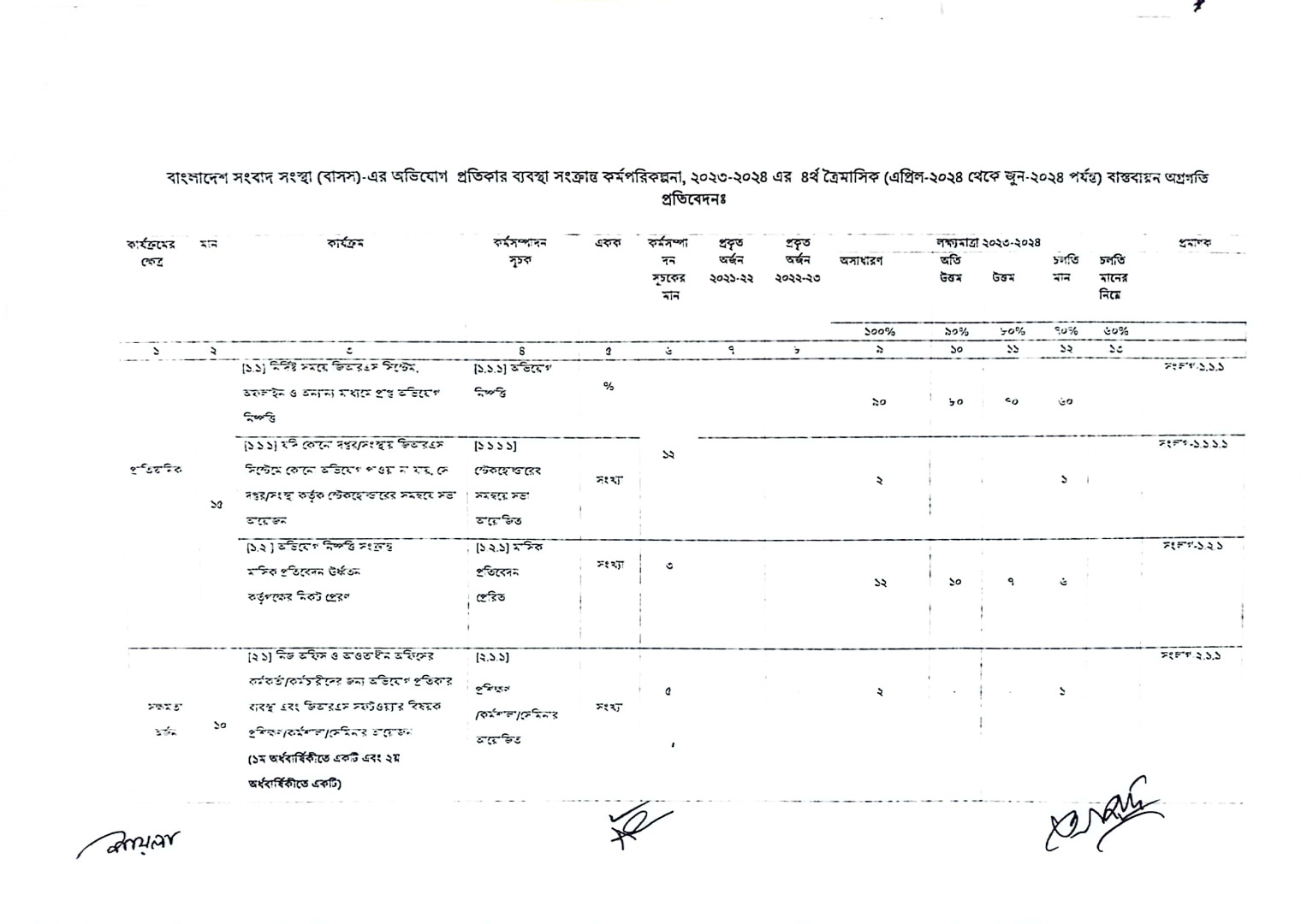 অভিযোগ প্রতিকার ব্যবস্থা বিষয়ক কর্মপরিকল্পনা ২০২৩-২৪ এর চতুর্থ কোয়ার্টার প্রতিবেদন