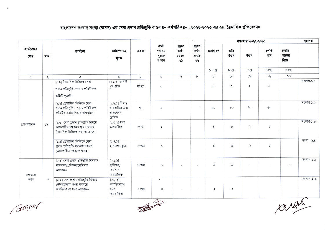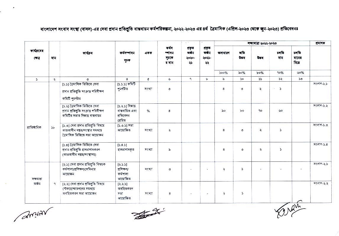 সেবা প্রদান প্রতিশ্রুতি বাস্তবায়ন কর্মপরিকল্পনা, ২০২২-২০২৩ এর ৪র্থ ত্রৈমাসিক (এপ্রিল’২৩ থেকে জুন’২৩)