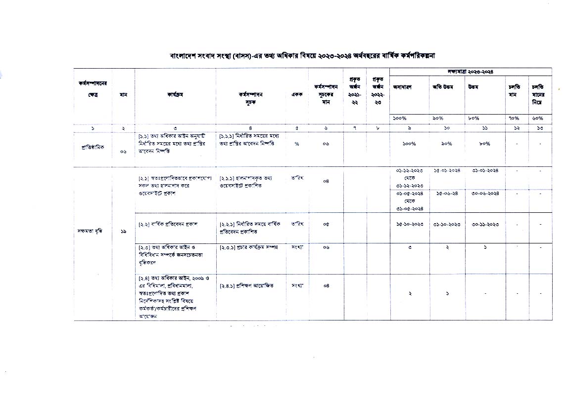 তথ্য অধিকার বিষয়ে ২০২৩-২০২৪ অর্থবছরের বার্ষিক কর্মপরিকল্পনা