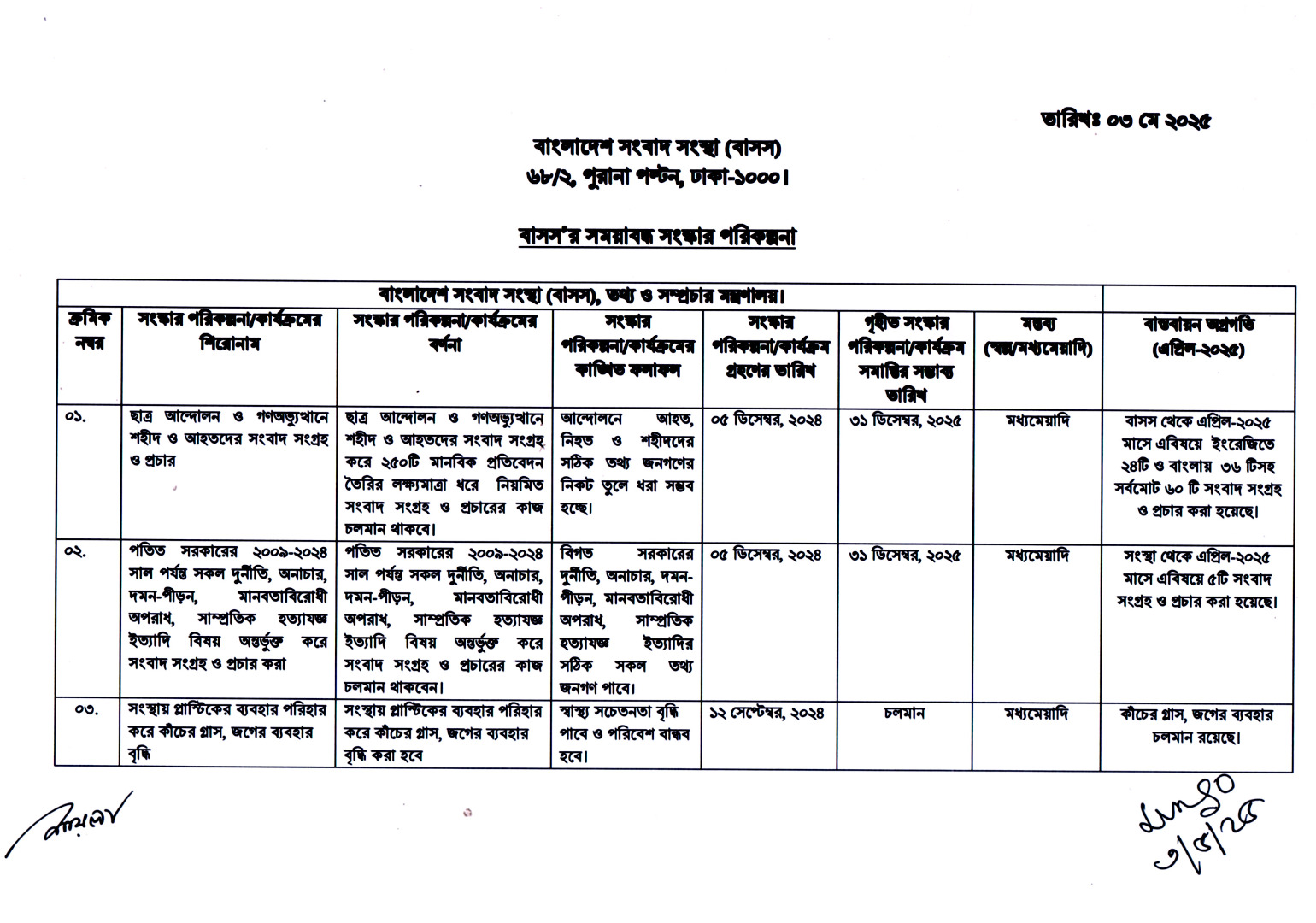 বাসস’র সময়াবদ্ধ সংস্কার পরিকল্পনা, মে ২০২৫